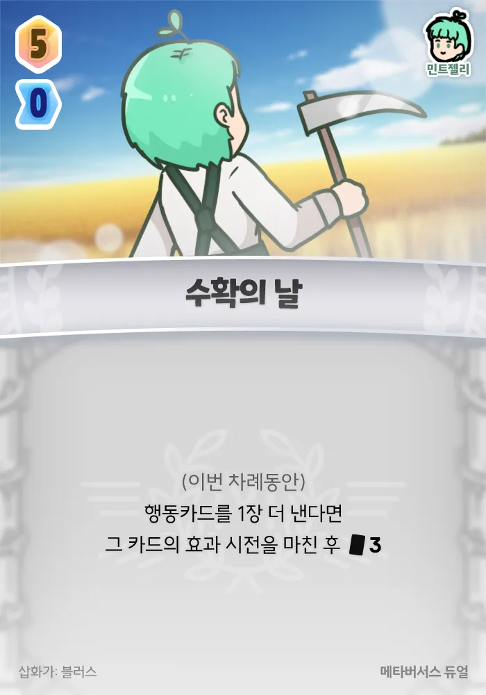 (이번 차례동안) 행동카드를 1장 더 낸다면 그 카드의 효과 시전을 마친 후 +3 카드
