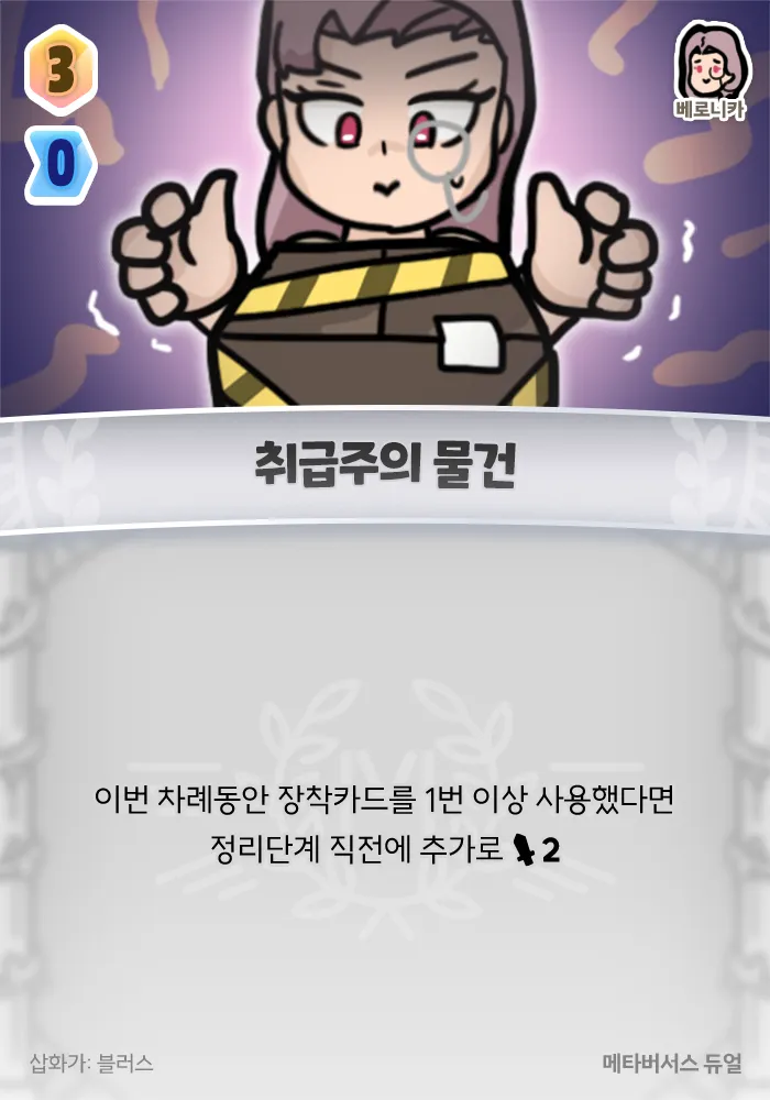 이번 차례동안 장착카드를 1번 이상 사용했다면 정리단계 직전에 추가로 2 피해.