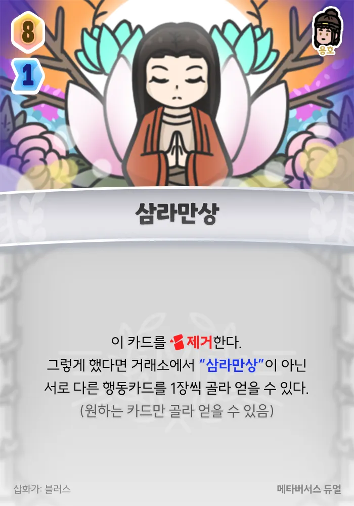 그렇게 했다면 거래소에서 “삼라만상”이 아닌 서로 다른 행동카드를 1장씩 골라 얻을 수 있다. (원하는 카드만 골라 얻을 수 있음)