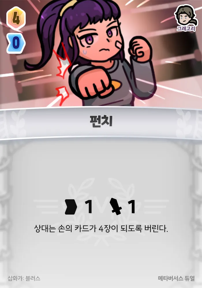 +1 행동력, 1 피해, 상대는 손의 카드가 4장이 되도록 버린다.