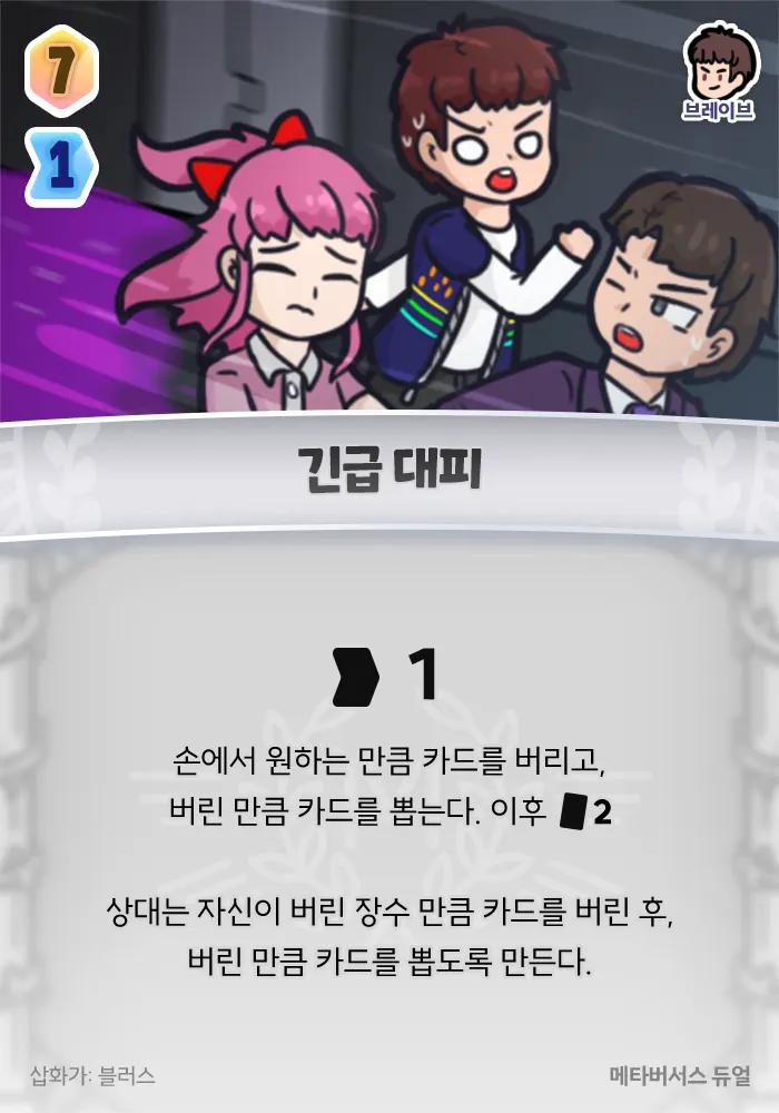 +1 행동력, 손에서 원하는 만큼 카드를 버리고, 버린 만큼 카드를 뽑는다. 이후 +2 카드. 상대는 자신이 버린 장수 만큼 카드를 버린 후, 버린 만큼 카드를 뽑도록 만든다.