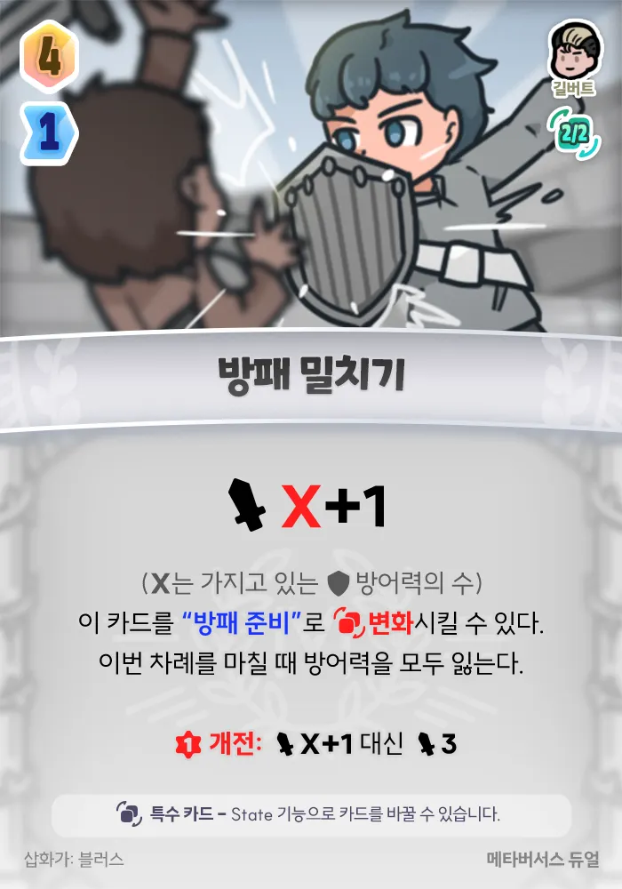 는 가지고 있는 방어력의 수) 이 카드를 “방패 준비”로