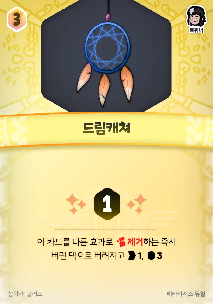 하는 즉시 버린 덱으로 버려지고 +1 행동력, +3 젬