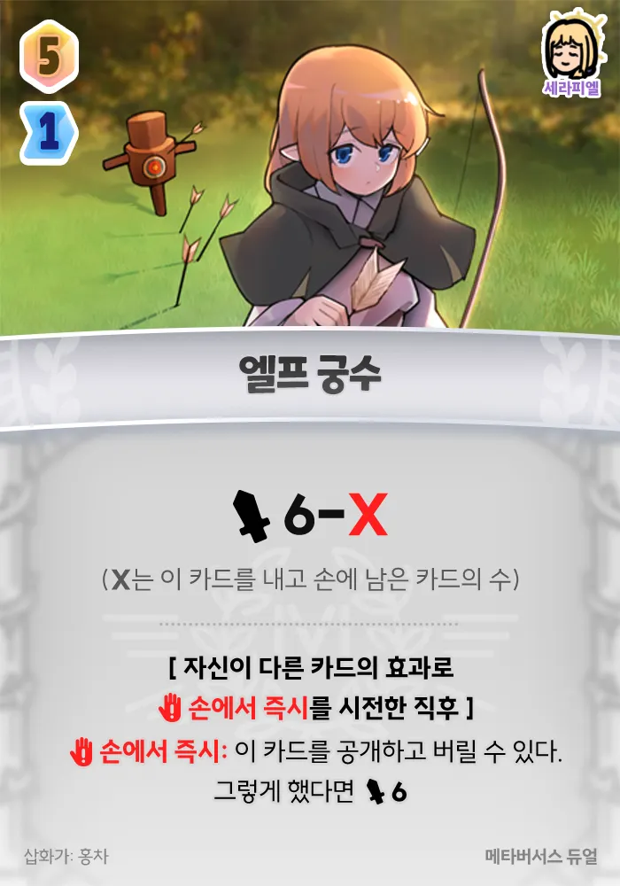 : 이 카드를 공개하고 버릴 수 있다. 그렇게 했다면 6 피해.