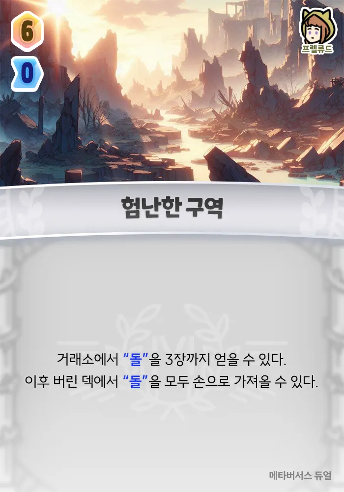거래소에서 “돌”을 3장까지 얻을 수 있다. 이후 버린 덱에서 “돌”을 모두 손으로 가져올 수 있다.