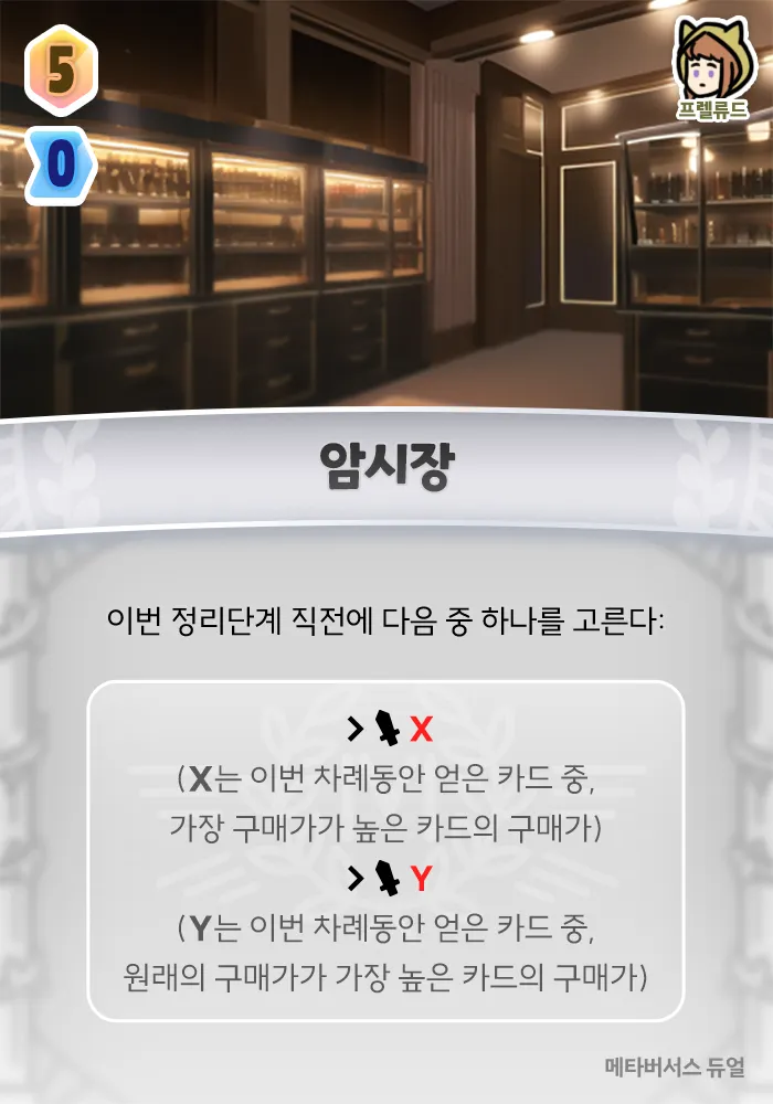 는 이번 차례동안 얻은 카드 중, 가장 구매가가 높은 카드의 구매가) ■