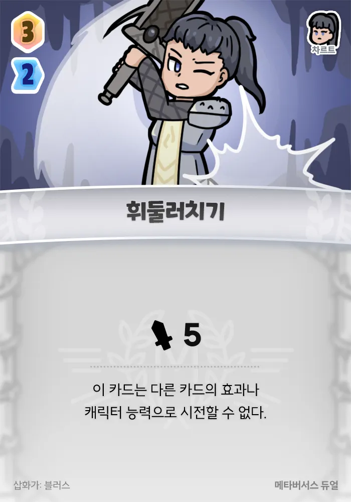 5 피해, 이 카드는 다른 카드의 효과나 캐릭터 능력으로 시전할 수 없다.