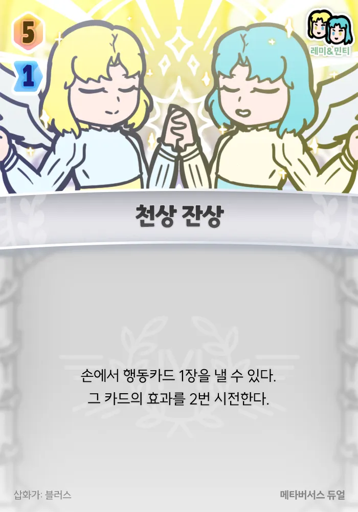 손에서 행동카드 1장을 낼 수 있다. 그 카드의 효과를 2번 시전한다.