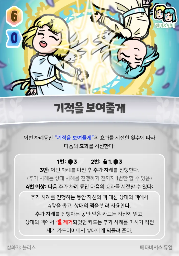 이번 차례동안 “기적을 보여줄게”의 효과를 시전했던 횟수에 따라 다음의 효과를 시전한다: