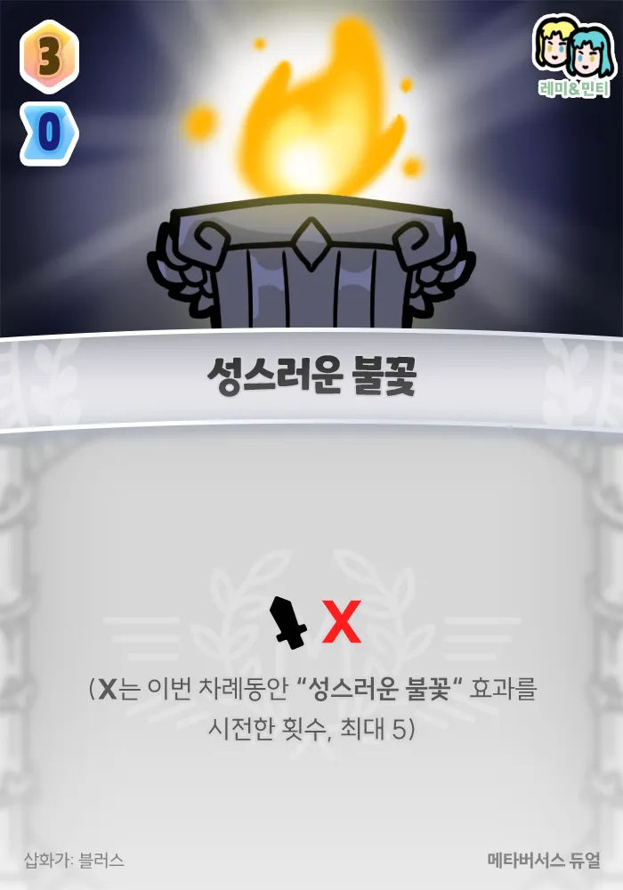 는 이번 차례동안 “성스러운 불꽃“ 효과를 시전한 횟수, 최대 5)