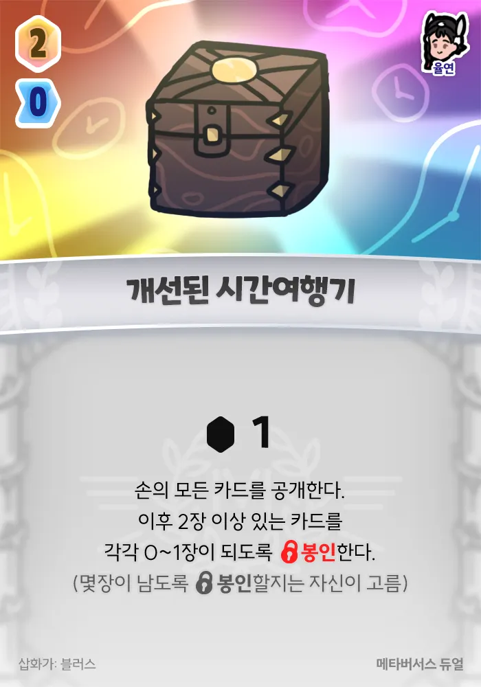 +1 젬, 손의 모든 카드를 공개한다. 이후 2장 이상 있는 카드를 각각 0~1장이 되도록