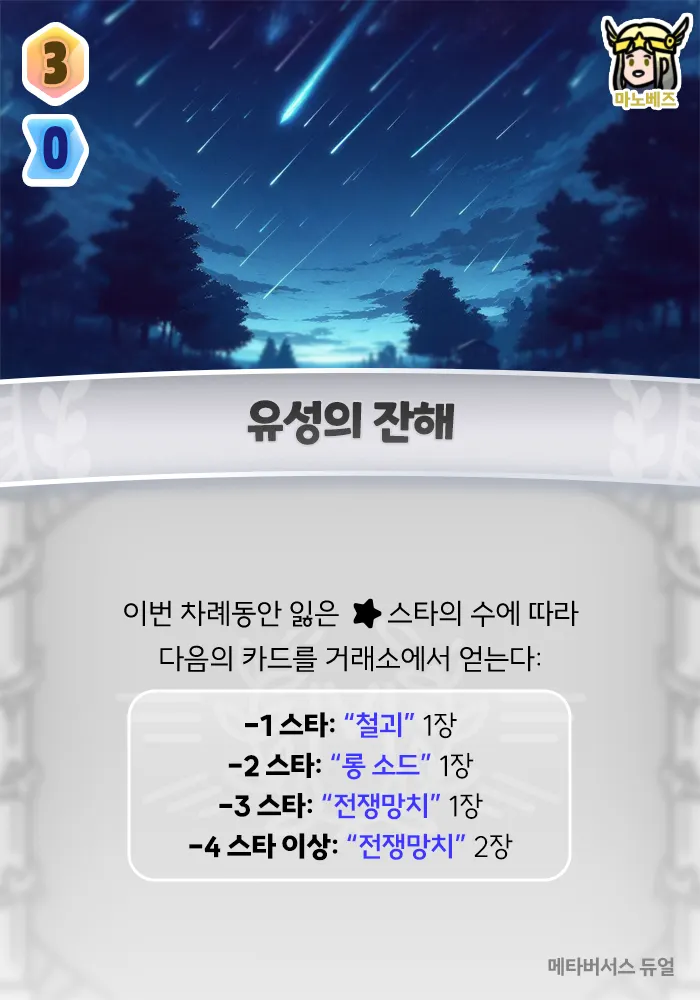이번 차례동안 잃은 스타의 수에 따라 다음의 카드를 거래소에서 얻는다: