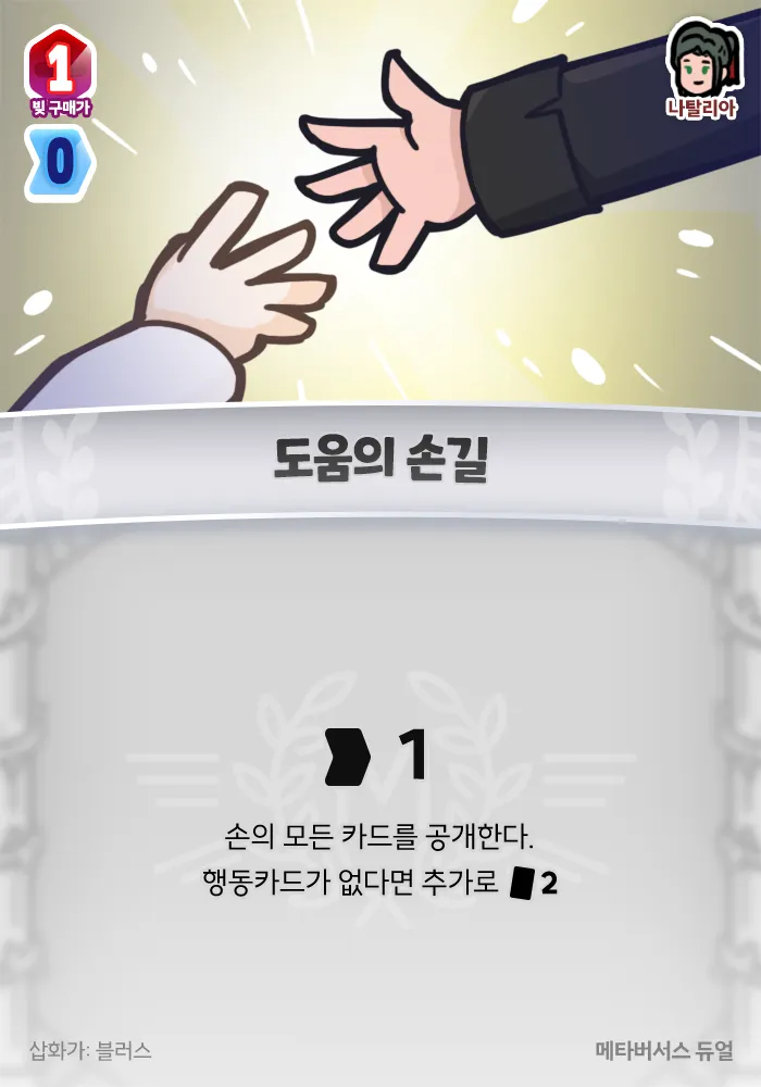 +1 행동력, 손의 모든 카드를 공개한다. 행동카드가 없다면 추가로 +2 카드