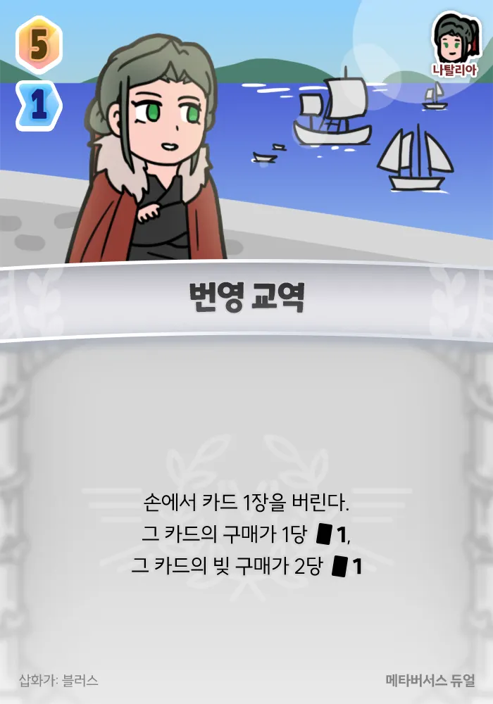 손에서 카드 1장을 버린다. 그 카드의 구매가 1당 +1 카드, 그 카드의 빚 구매가 2당 +1 카드.