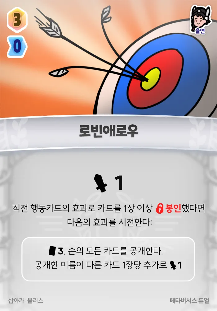 1 피해, 직전 행동카드의 효과로 카드를 1장 이상