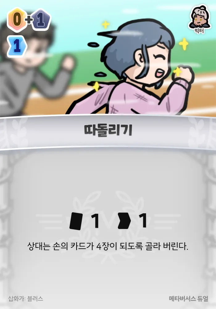 +1 카드, +1 행동력, 상대는 손의 카드가 4장이 되도록 골라 버린다.