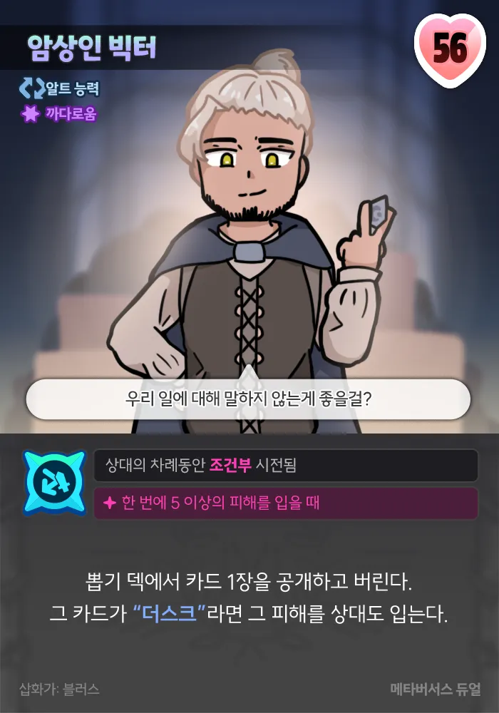 더스크 카드더미: 경기 시작 직전, 거래소에 “더스크” 재화카드 20장으로 이뤄진 카드더미를 추가합니다. 구매단계 때 구매해 얻는 등 다양한 방법으로 이 카드를 얻을 수 있습니다.