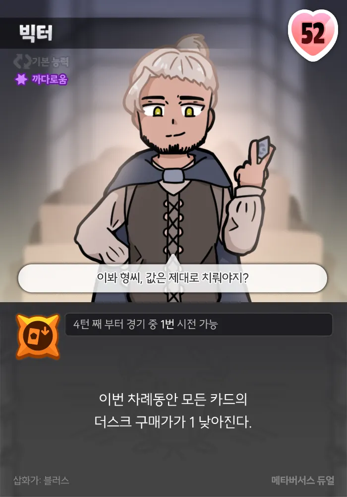 ”거래소에서 구매가가 X 이하인 카드 얻기” 등의 효과를 시전할 땐 더스크 구매가가 적힌 카드를 고를 수 없습니다.