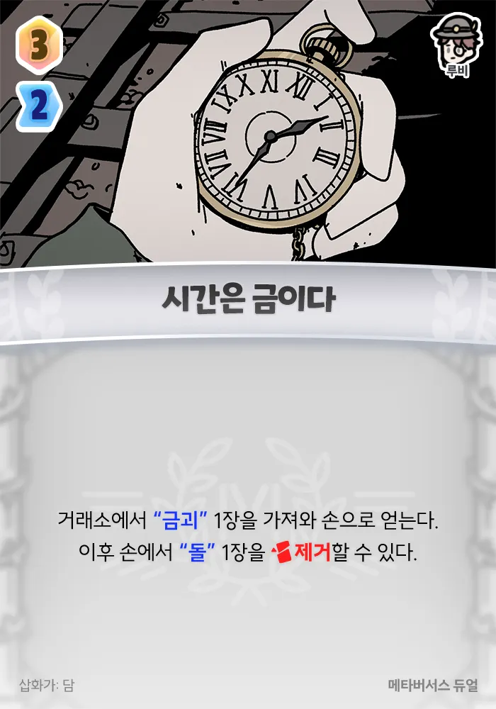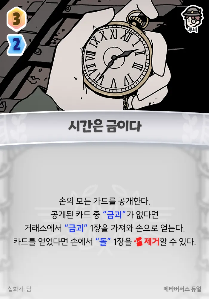 거래소에서 “금괴” 1장을 가져와 손으로 얻는다. 이후 손에서 “돌” 1장을