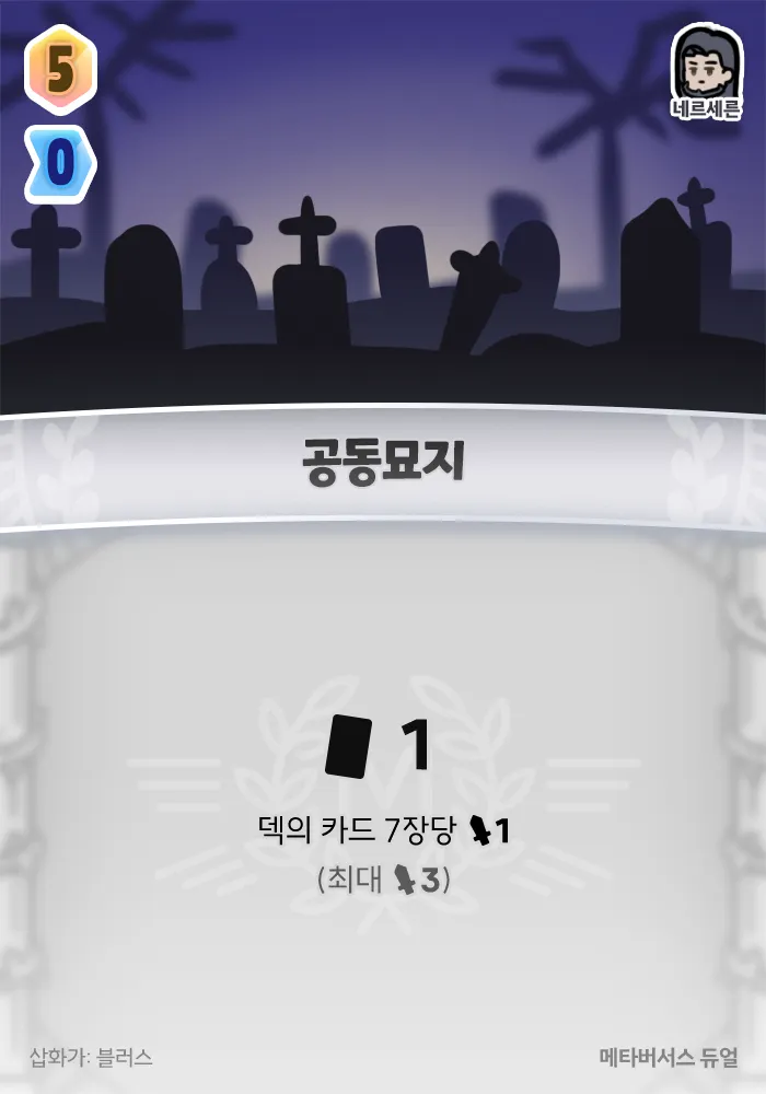 +1 카드, 덱의 카드 7장당 1 피해. (최대 3 피해)