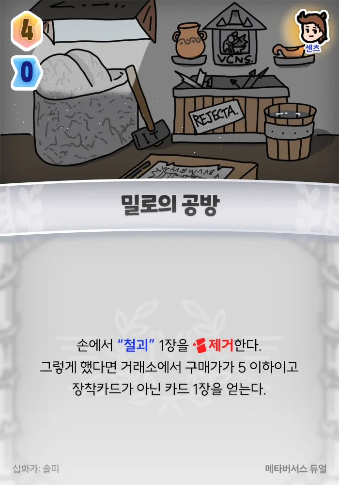 한다. 그렇게 했다면 거래소에서 구매가가 5 이하이고 장착카드가 아닌 카드 1장을 얻는다.