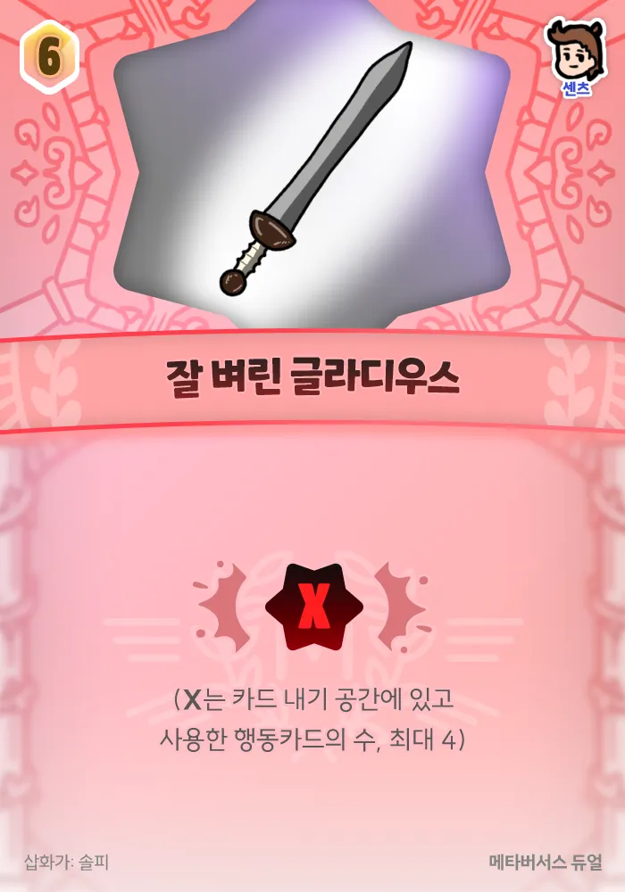 피해량. (X는 카드 내기 공간에 있고 사용한 행동카드의 수, 최대 4)