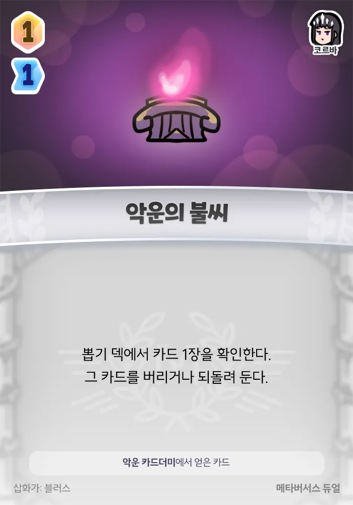뽑기 덱에서 카드 1장을 확인한다. 그 카드를 버리거나 되돌려 둔다.