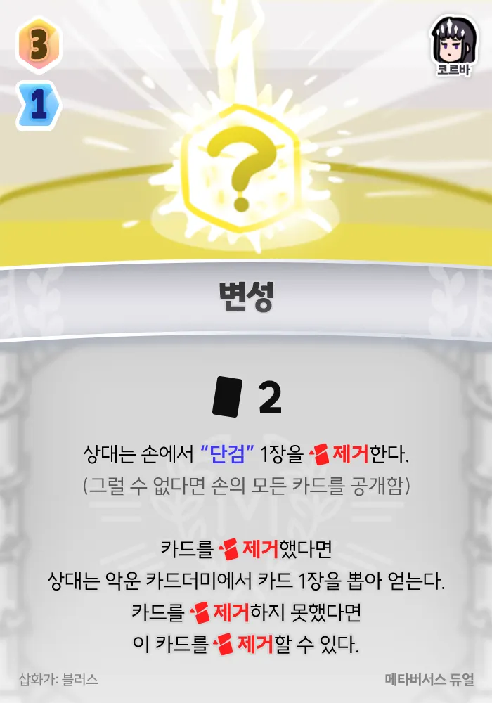 했다면 상대는 악운 카드더미에서 카드 1장을 뽑아 얻는다. 카드를