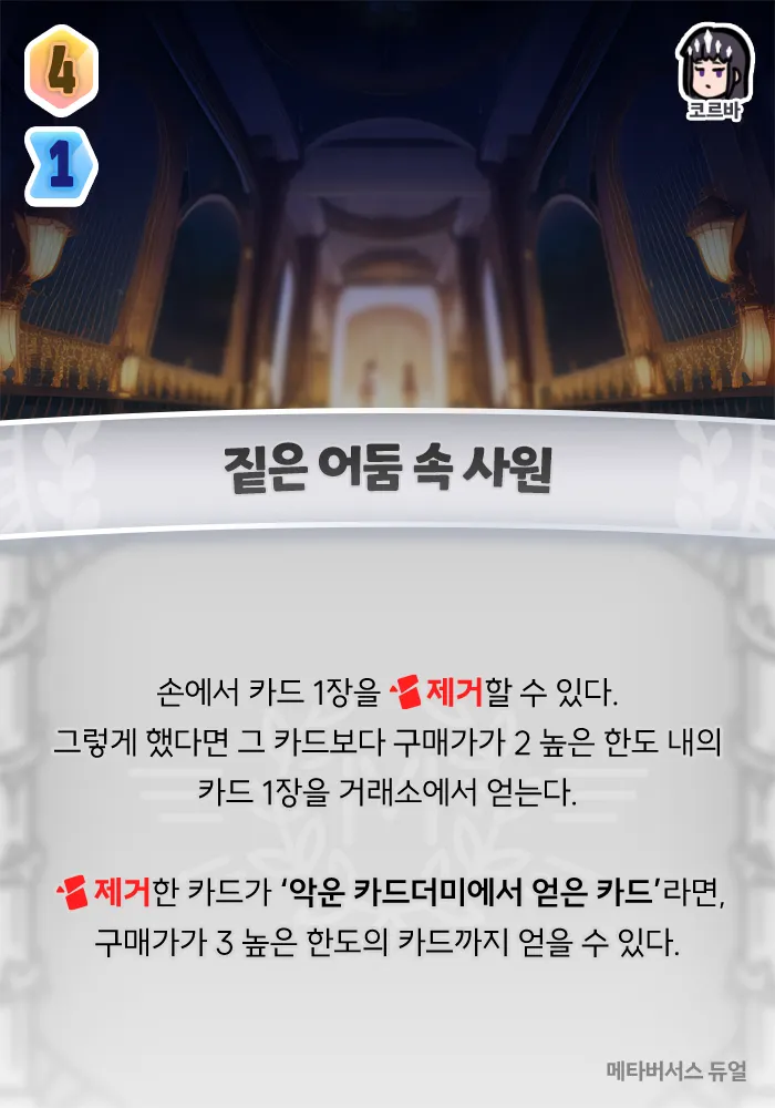 한 카드가 ‘악운 카드더미에서 얻은 카드’라면, 구매가가 3 높은 한도의 카드까지 얻을 수 있다.