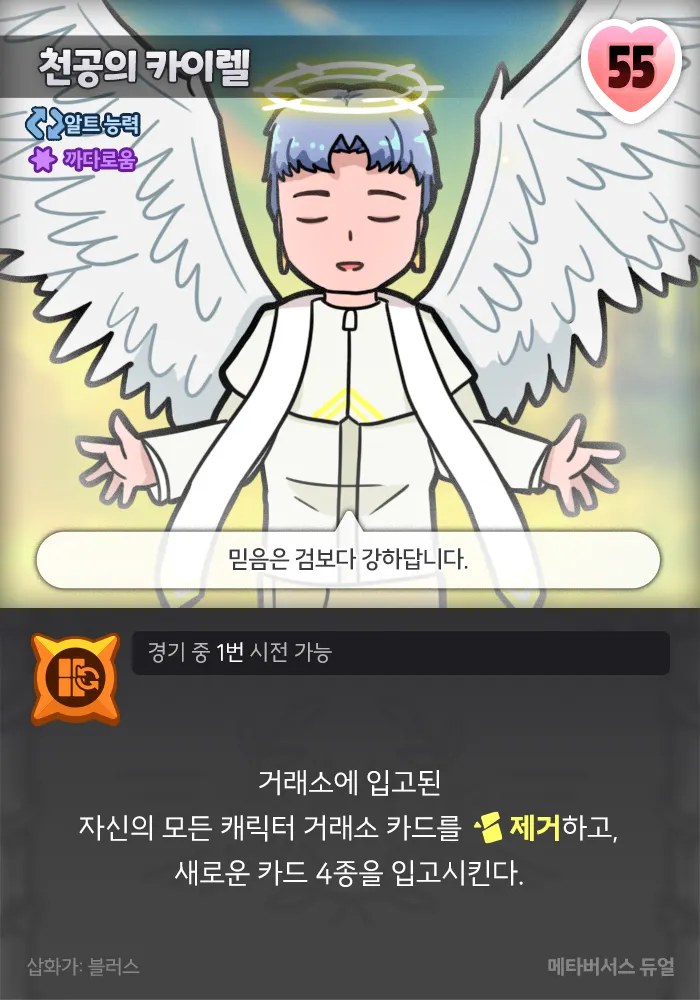 카이렐의 즉발카드: 별 모양 틀의 분홍색 카드 “즉발카드”가 추가됩니다. 이 카드는 구매하거나 얻더라도 덱에 추가되지 않고 거래소(또는 카드가 있었던 자리)에 그대로 둡니다. 즉발카드를 구매하거나 얻는 시도를 했다면 그 카드의 효과를 즉시 시전합니다. 따라서 ‘거래소에서 카드를 골라