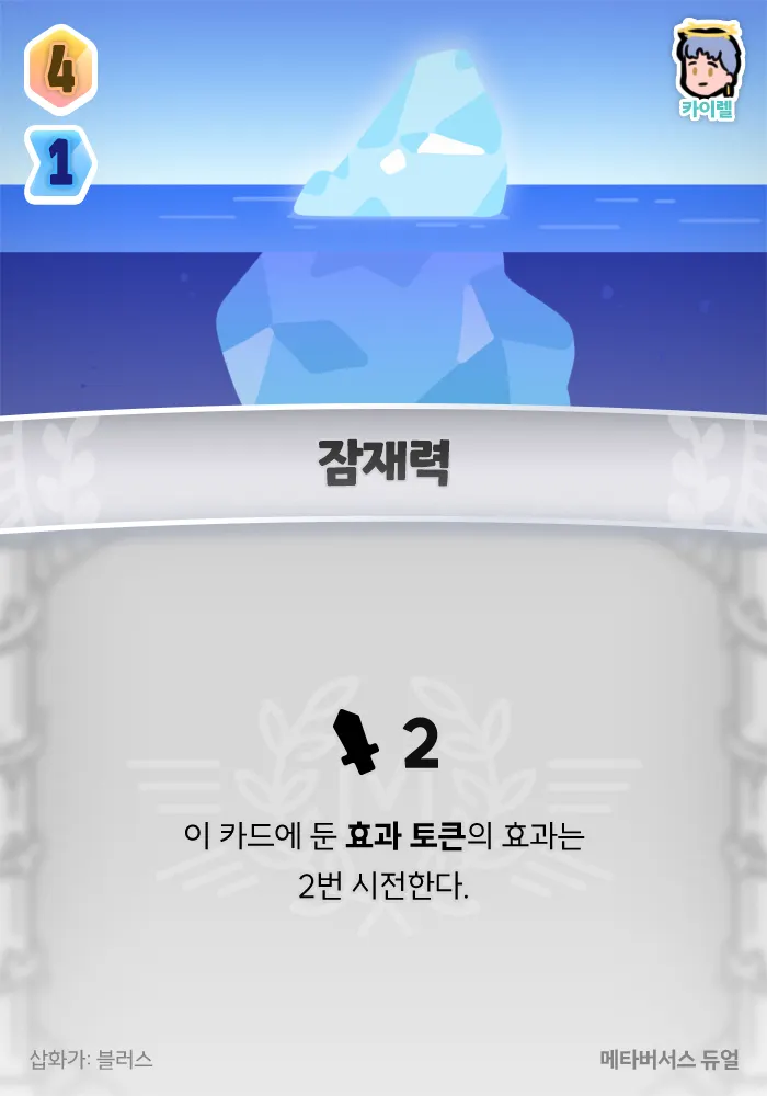 2 피해, 이 카드에 둔 효과 토큰의 효과는 2번 시전한다.