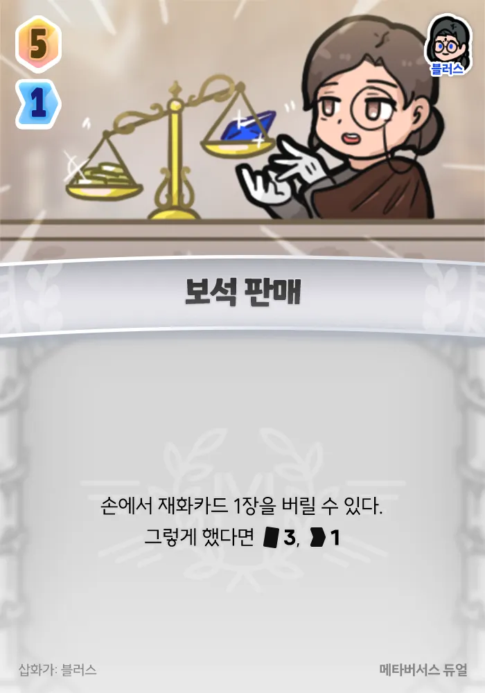 보석 판매 처럼 손의 카드를 늘려주는 카드로 많은 수의 재화카드를 가져오기… 등등 여러가지 방법으로 어떻게든 젬을 모아봅시다!
