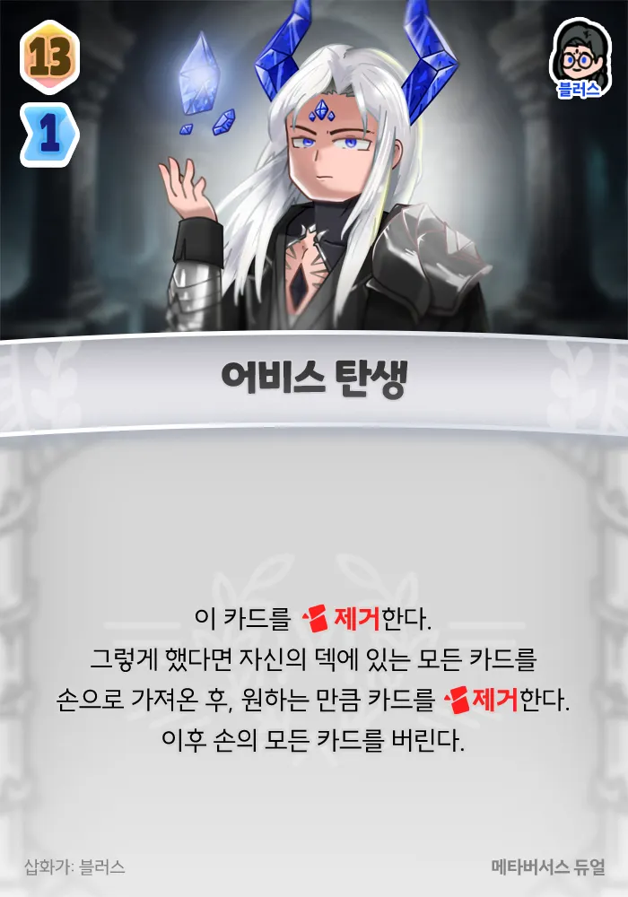 크리스탈 할버드 가 5장이 손에 잡히므로 매 차례마다 35 피해를 주게 됩니다!! 어렵고 이론에 가까운 전략이지만, 상대를 깜짝 놀래킬 수 있는 방법이므로 도전해보세요!※ 업데이트 이력에 따라, 캐릭터 능력 / 수록 카드의 효과 / 추가 규칙 또는 키워드 가 달라질 수 있습니다. 따라서 오래된 포스트에 작성된 공략의 경우 실제와 플레이가 달라지거나 불가능할 수도 있습니다. 업데이트에 대한 자세한 사항은