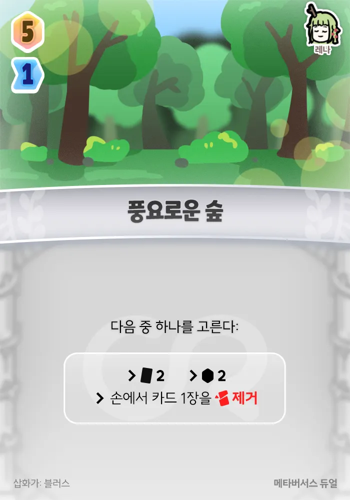 다음 중 하나를 고른다: ■ +2 카드 ■ +2 젬 ■ 손에서 카드 1장을