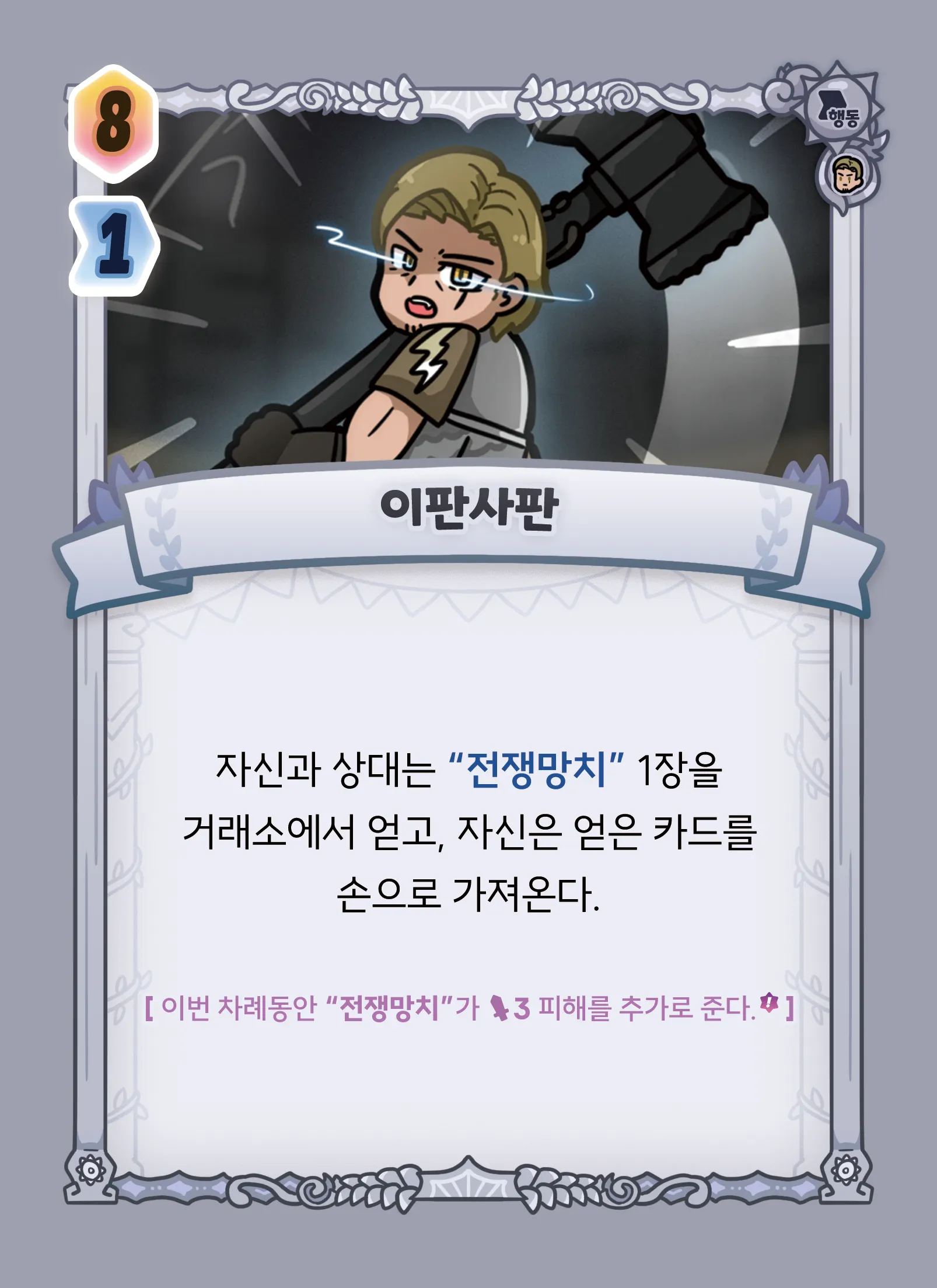 [이번 차례동안 “전쟁망치”가 3 피해를 추가로 준다.*]