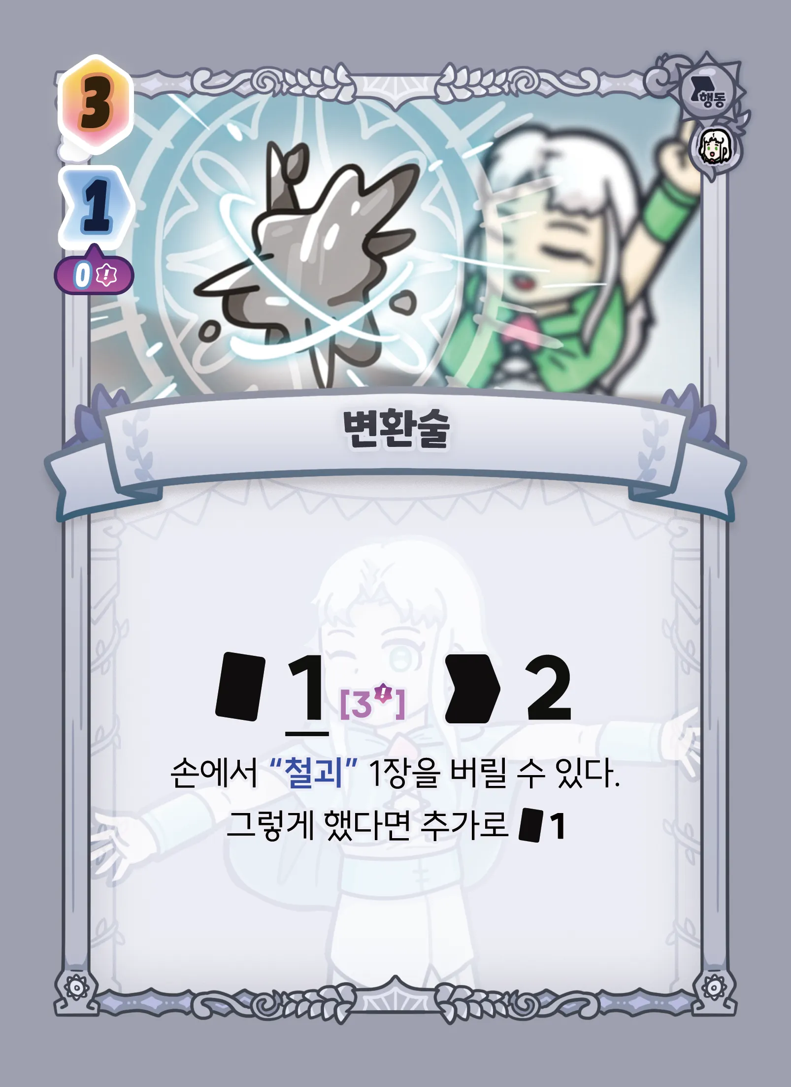 카드, +2 행동력, 손에서 “철괴” 1장을 버릴 수 있다. 그렇게 했다면 추가로 +1 카드
