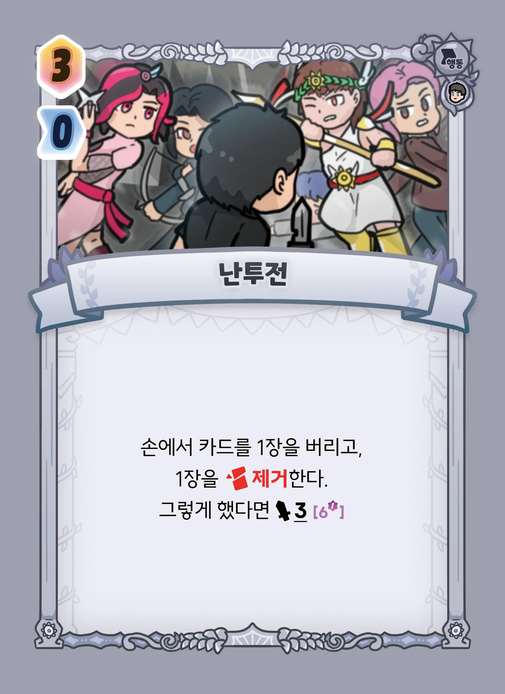 손에서 카드 1장을 버리고, 1장을