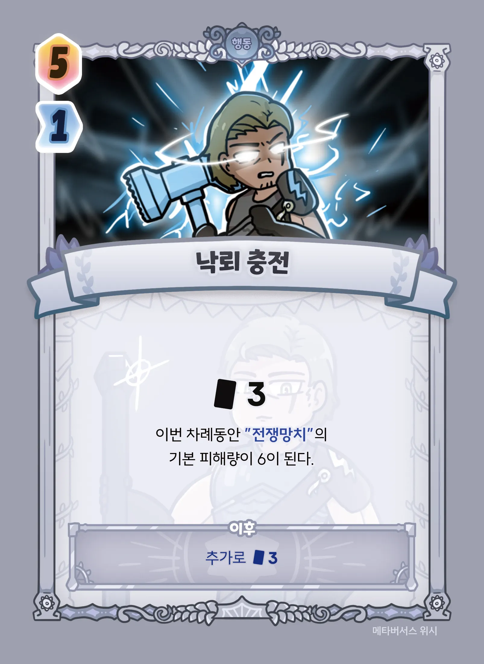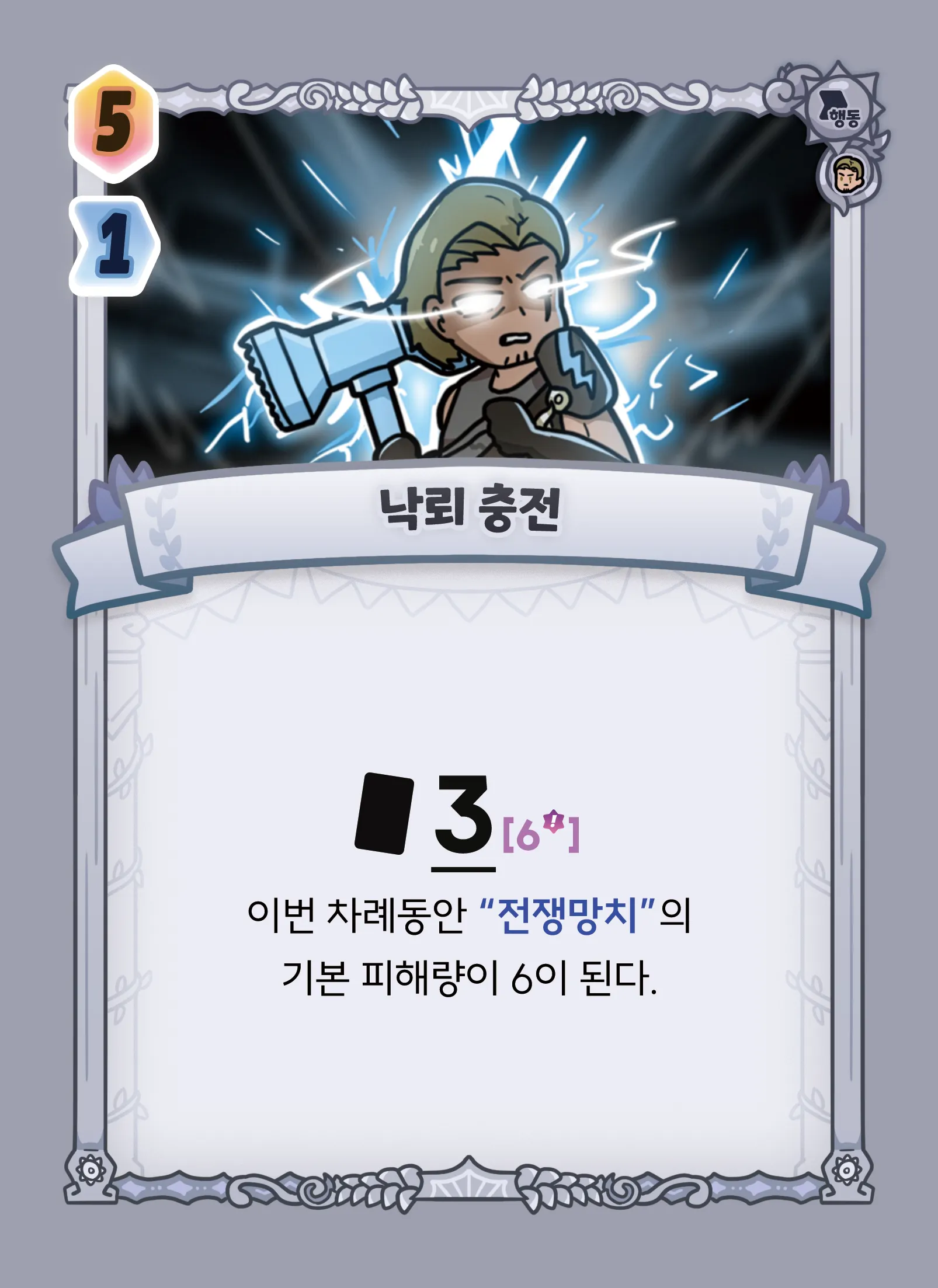 카드, 이번 차례동안 “전쟁망치”의 기본 피해량이 6이 된다.