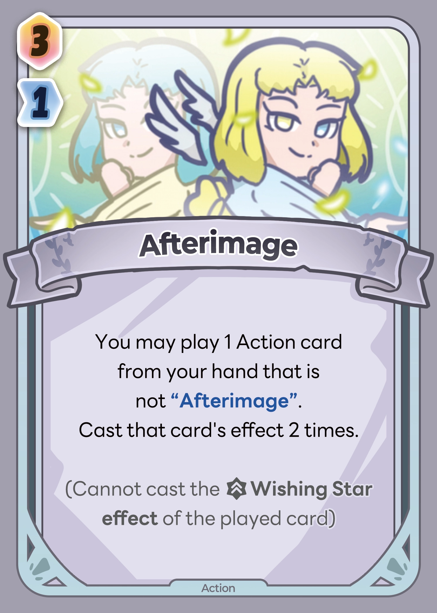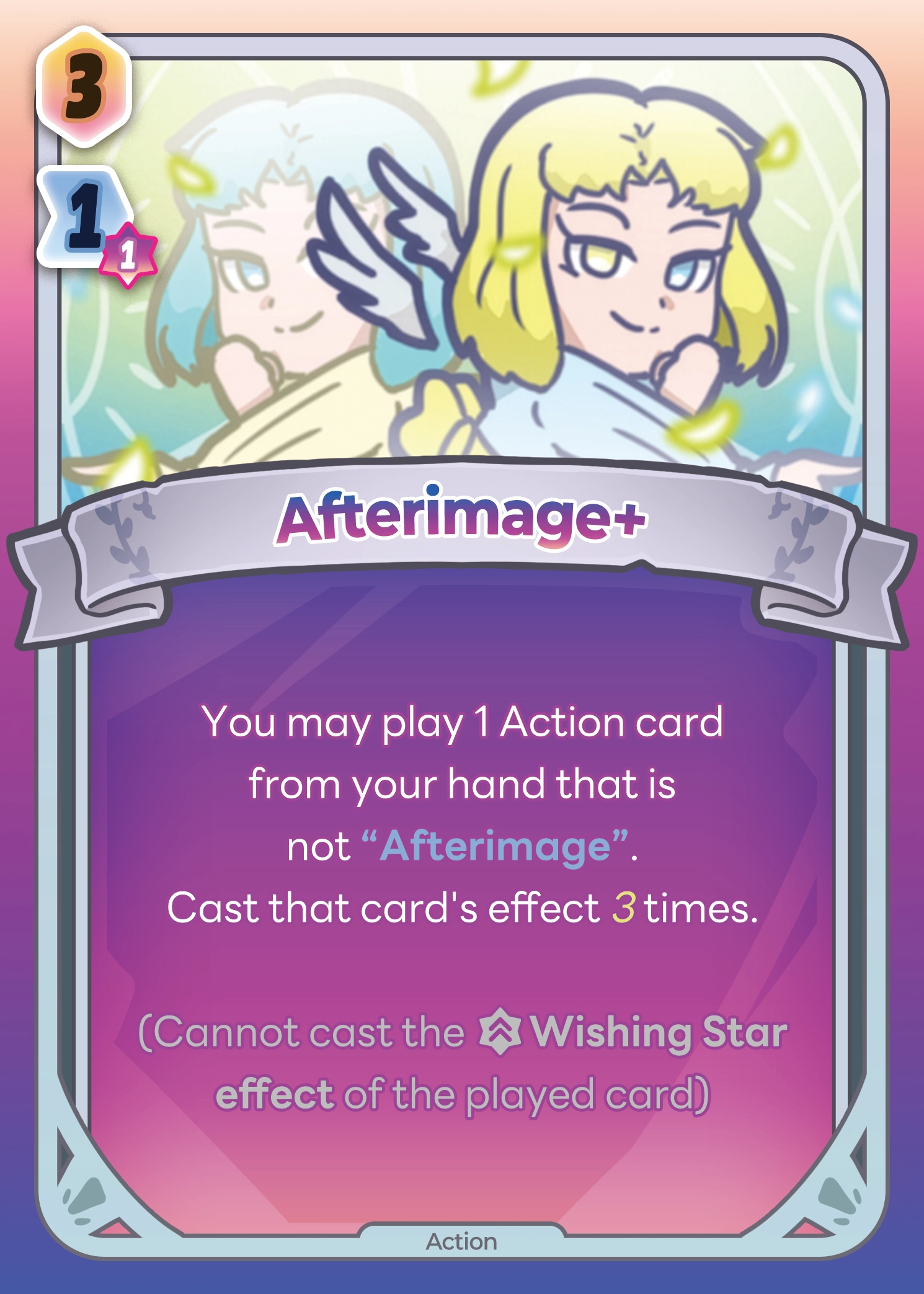 You may play 1 Action card from your hand that is not "Afterimage".
