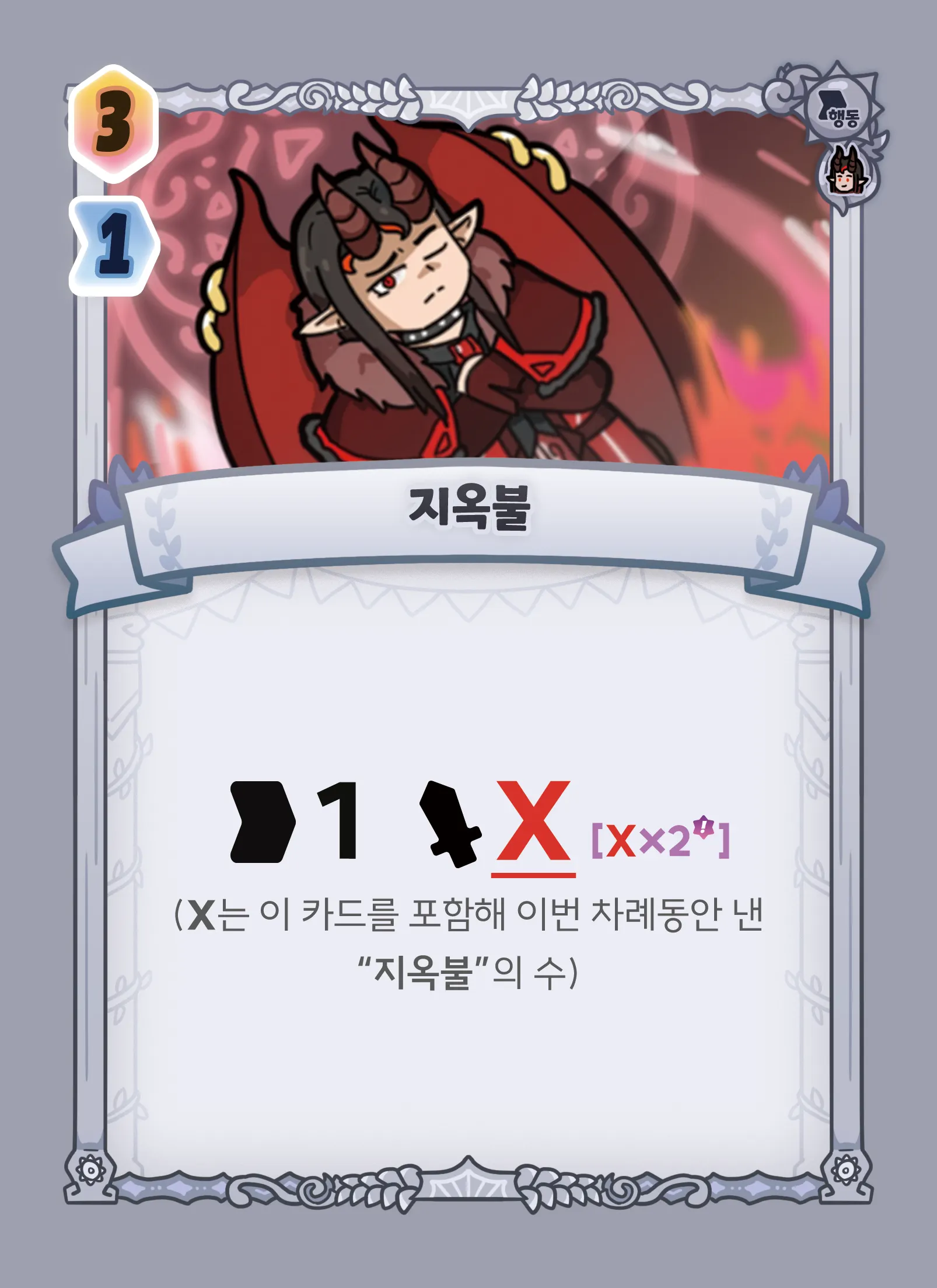 는 이 카드를 포함해 이번 차례동안 낸 “지옥불”의 수)