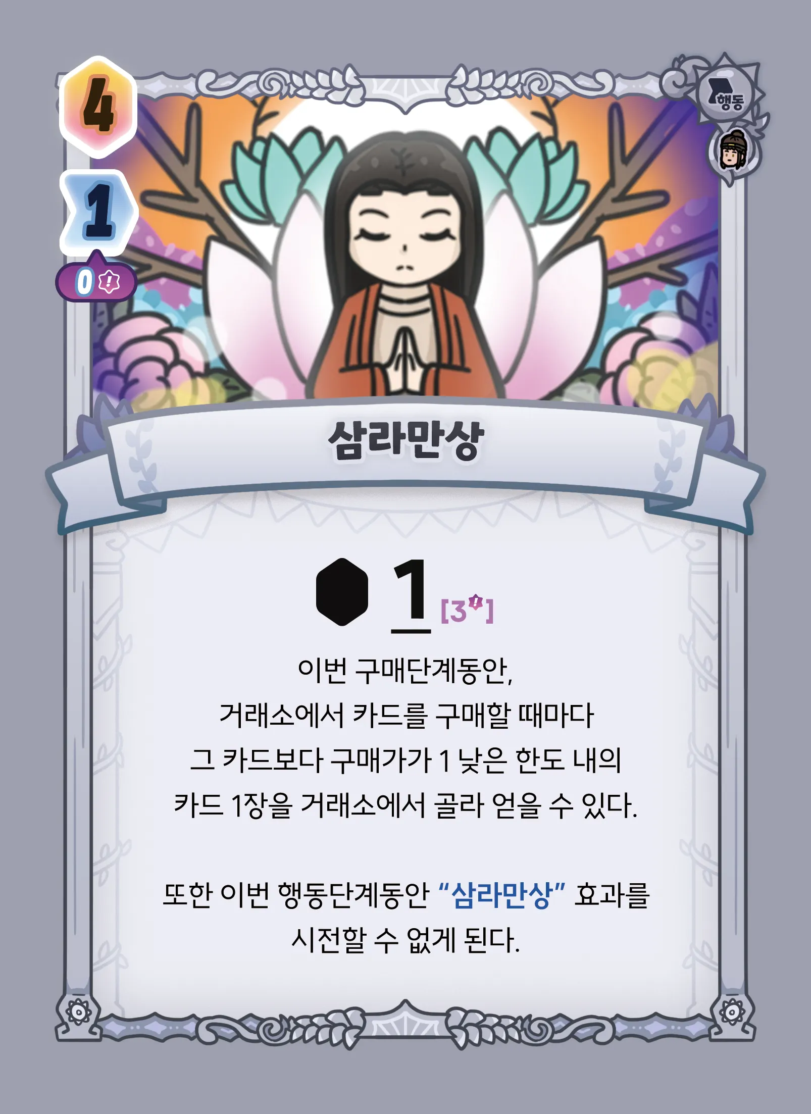 행동단계동안 “삼라만상”을 2번째 이후로 내거나, 효과를 사용했다면 아무런 효과도 시전하지 않습니다. (추가 젬도 얻지 않습니다.)