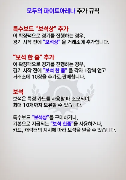 - 보석 8개: “금괴” 2장, 추가로 손패에서 카드 1장을 제거할 수 있습니다.