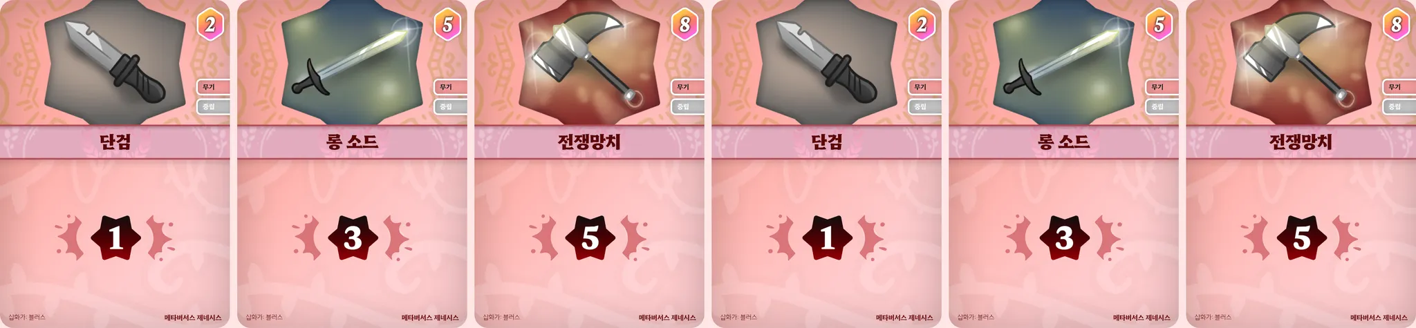 무기카드: 빨간색과 별 모양 틀로 이뤄진 카드