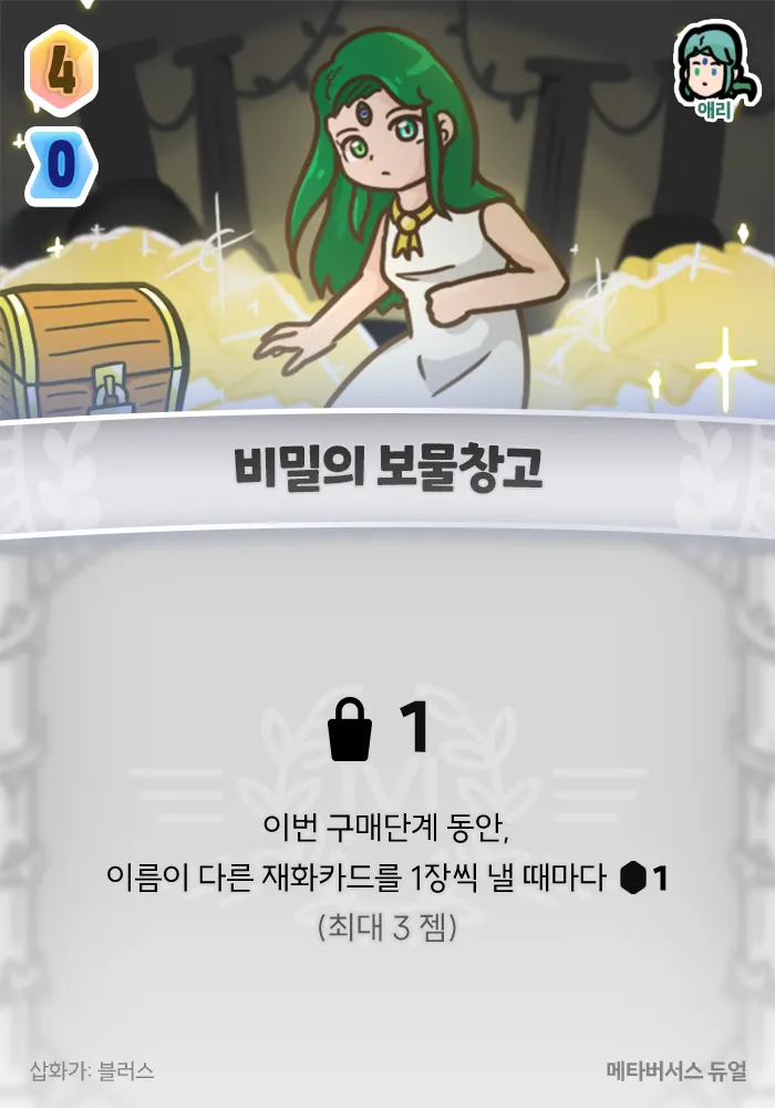 +1 구매, 이번 구매단계 동안, 이름이 다른 재화카드를 1장씩 낼 때마다 +1 젬 (최대 +3 젬)