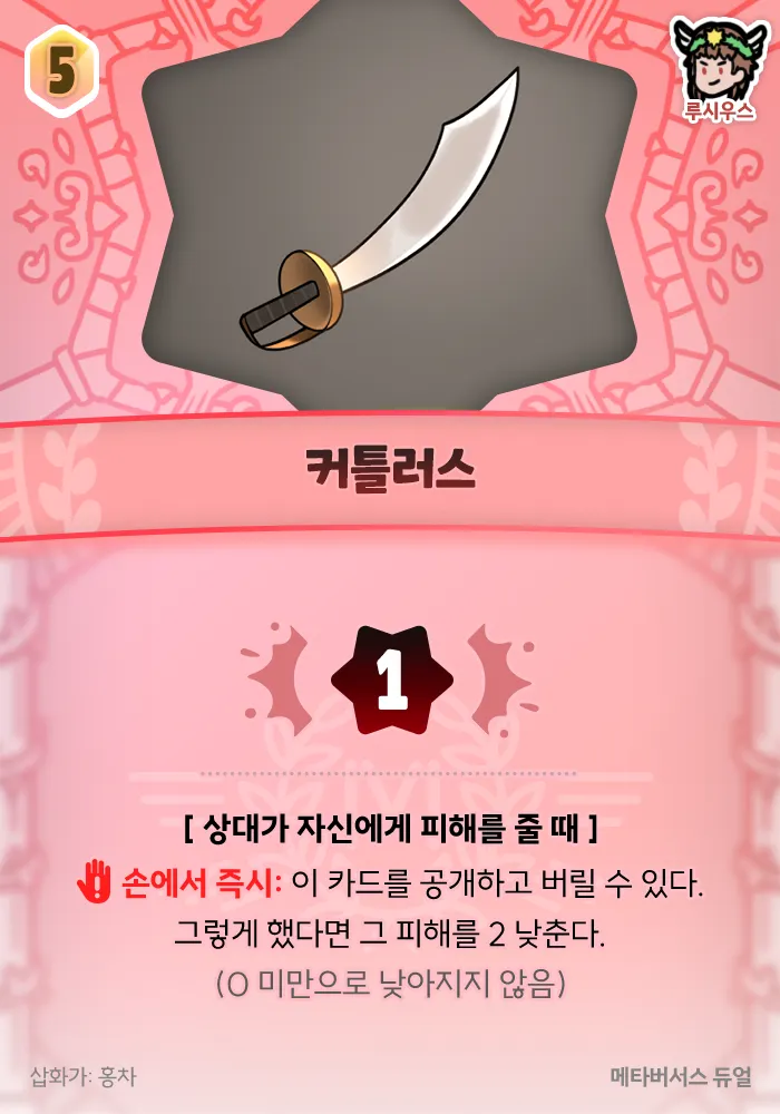 이 카드를 공개하고 버릴 수 있다. 그렇게 했다면 그 피해를 2 낮춘다. (0 미만으로 낮아지지 않음)