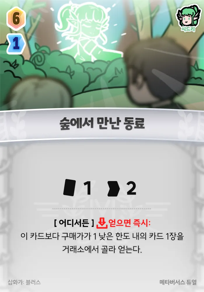이 카드보다 구매가가 1 낮은 한도 내의 카드 1장을 거래소에서 골라 얻는다.