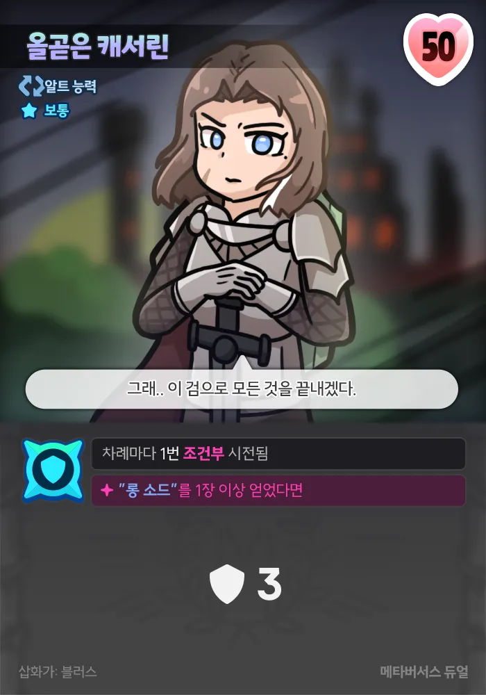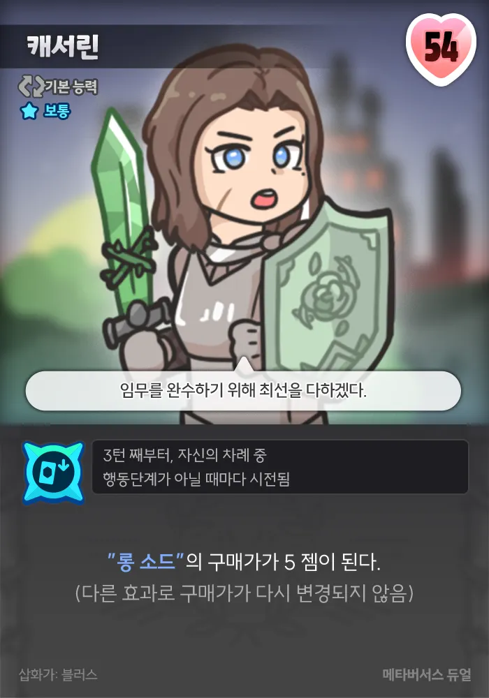 그렇게 했다면 +2 카드, 이후 버린 “롱 소드” 1장당 +4 방어력.