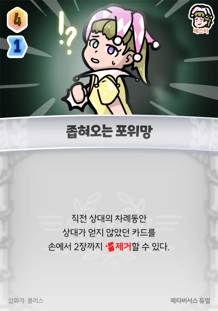 직전 상대의 차례동안 상대가 얻지 않았던 카드를 손에서 2장까지