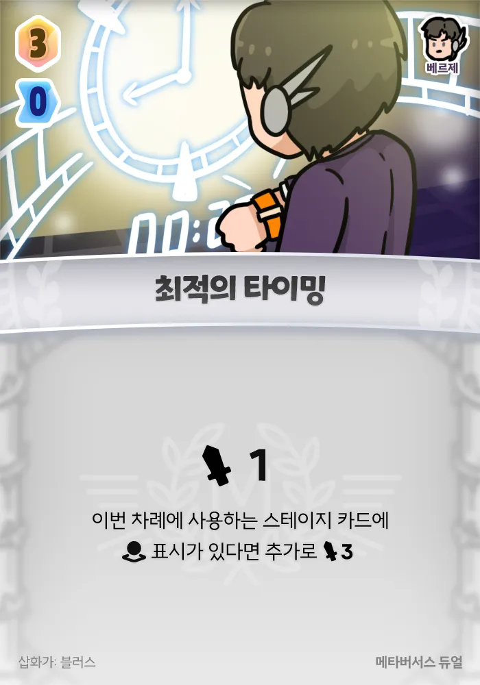 1 피해, 이번 차례에 사용하는 스테이지 카드에 ○ 표시가 있다면 추가로 3 피해.