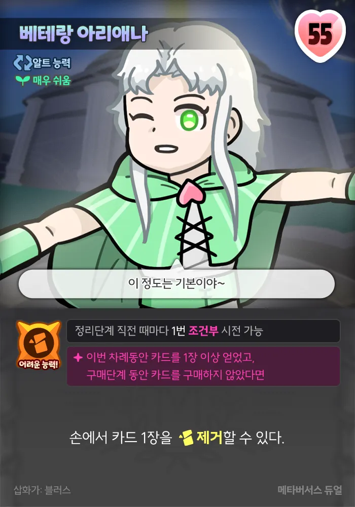 +1 구매, 카드 내기 공간에 카드가 없었다면, 이번 차례동안 모든 카드의 구매가가 2 낮아진다. (0 미만으로 낮아지지 않음)